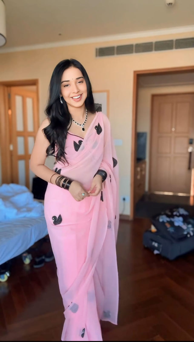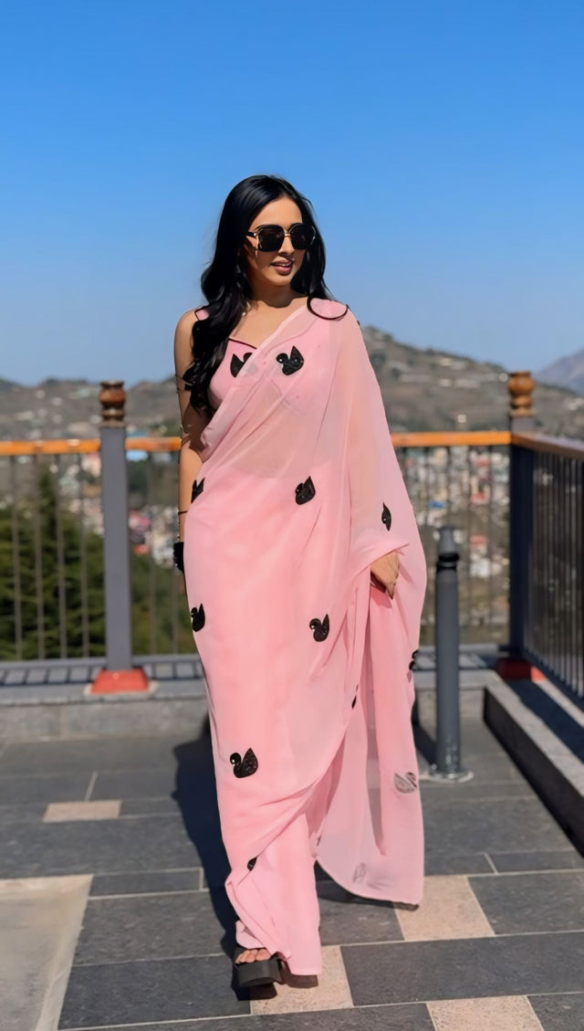Embellished Embroidery Pink Color Ready To Wear Saree