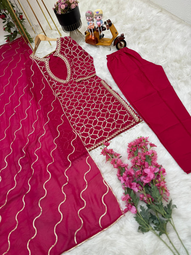 Embellished Sequence Embroidery Pink Color Anarkali Suit