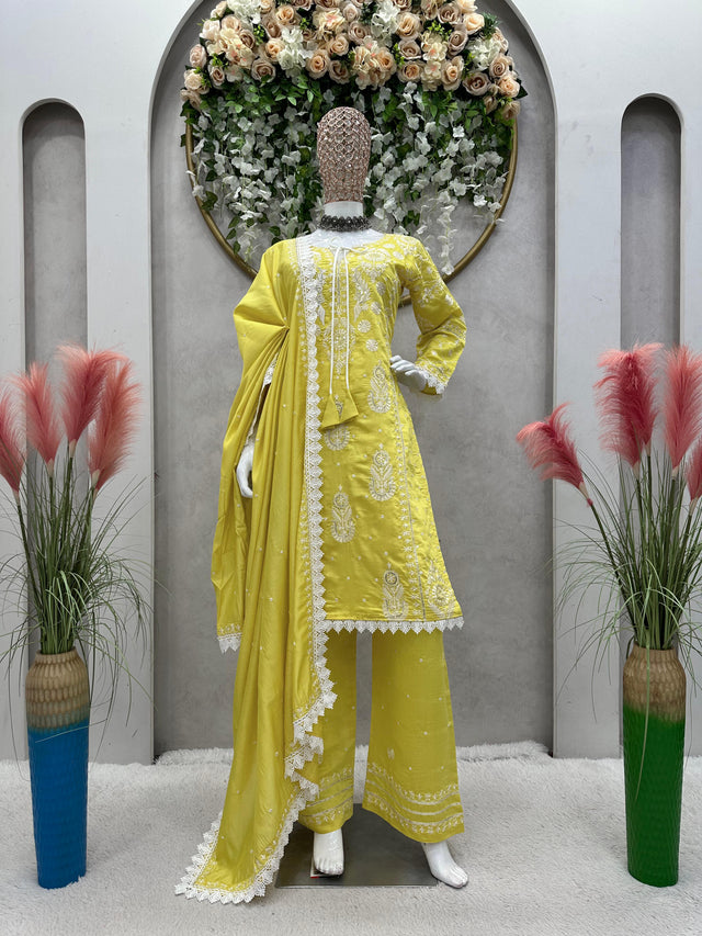 Embellished Sequence Work Yellow Color Anarkali Suit