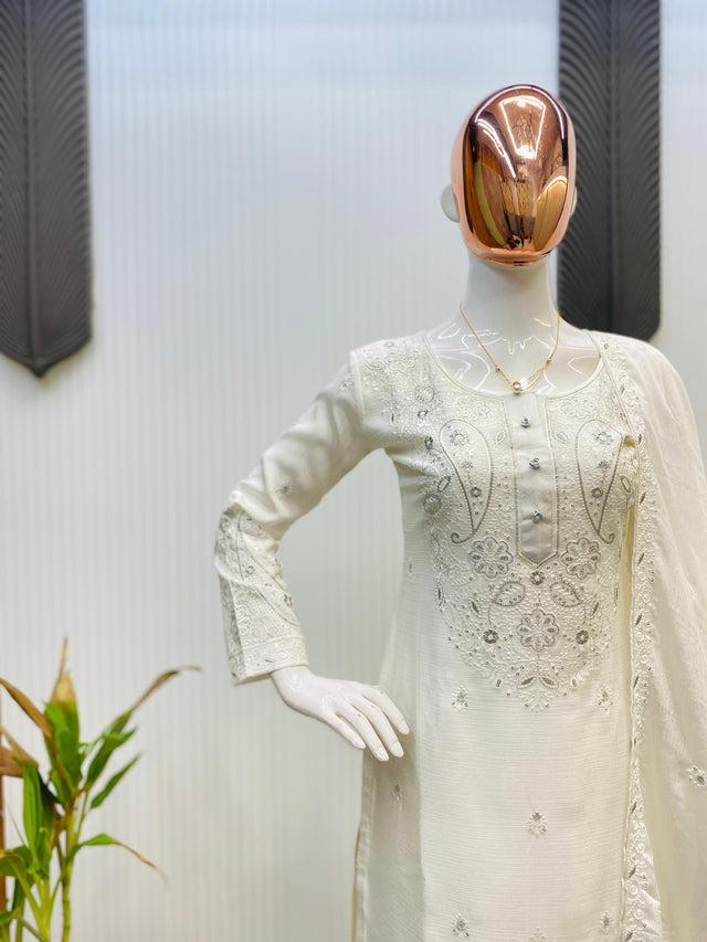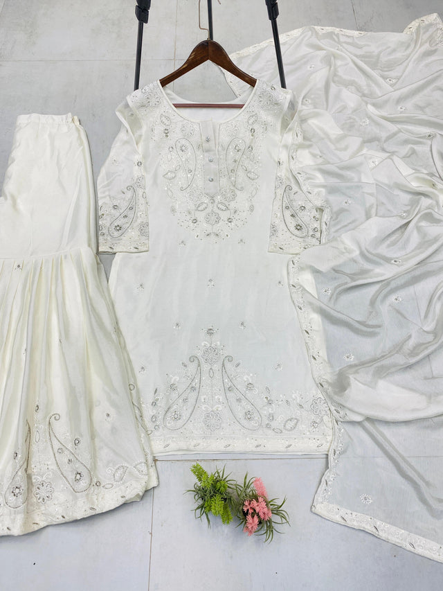 Embroidery Work White Color Lovely Sharara Suit