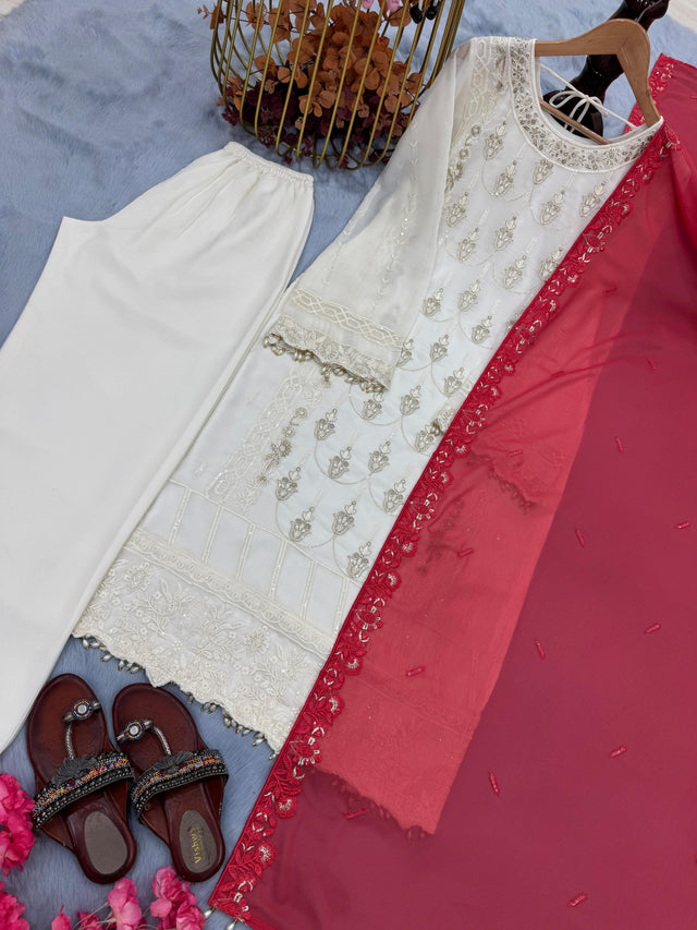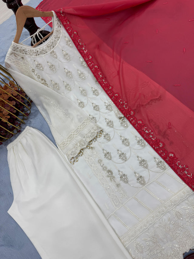 Dupatta Fabric : Heavy Faux Georgette With Embroidery 3 mm Sequence Work With Fancy Latkan Lace Border