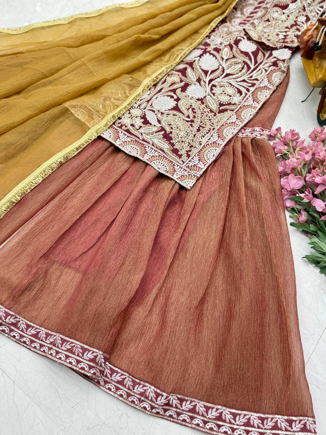 Exclusive Sequence Embroidery Work Mustard Color Palazzo Suit