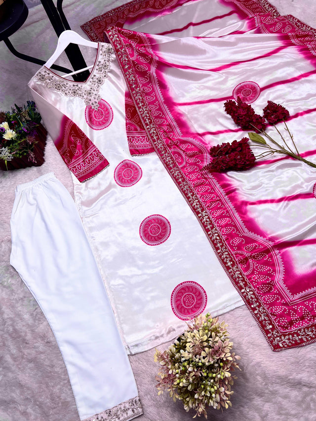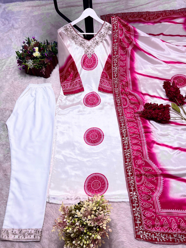 2️⃣ WORK :- PRETTY DIGITAL PRINT WITH EMBROIDERY SEQUENCE LACE BORDER.