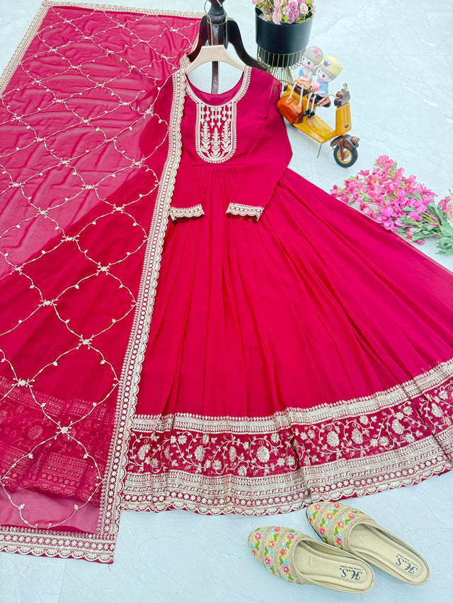Eyes Catching Georgette Embroidery Work Pink Color Gown