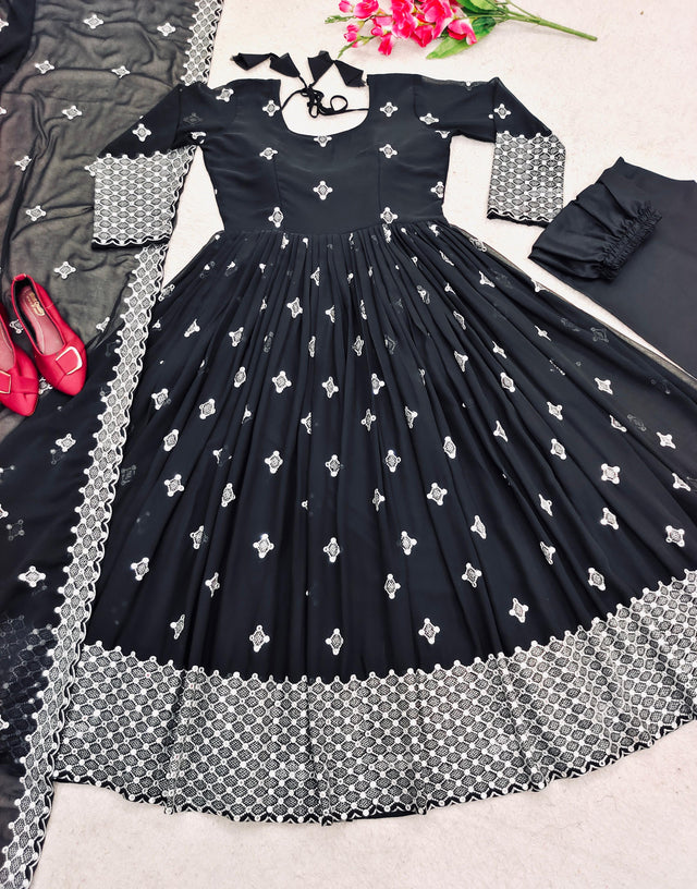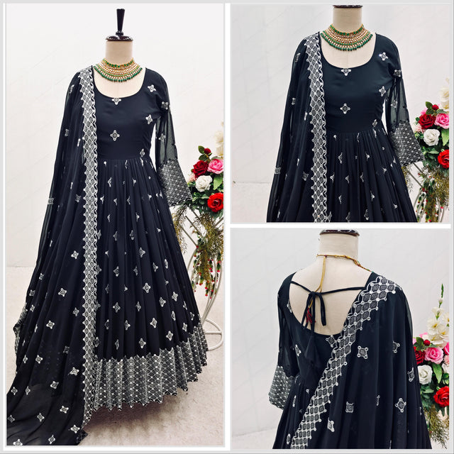 Fabulous Black Color Georgette Sequence Embroidery Work Gown