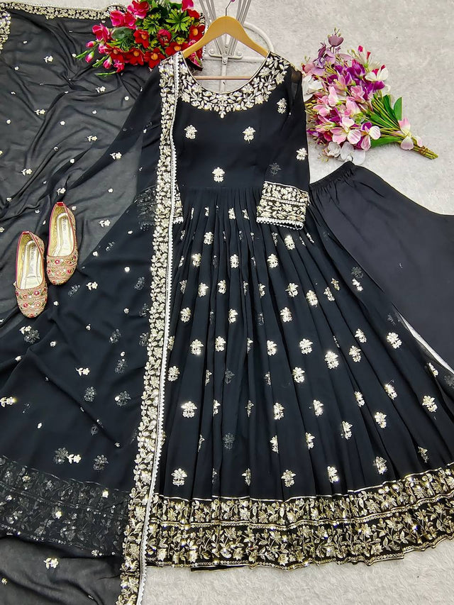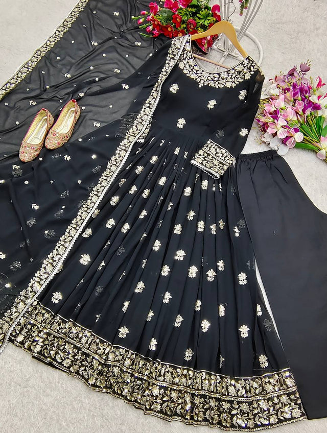*Gwon Fabric* ย : Pure Fox Georgette With Heavy Embroidery 5mm Sequence Work With Full-Sleeve With (*Attached Ped*)