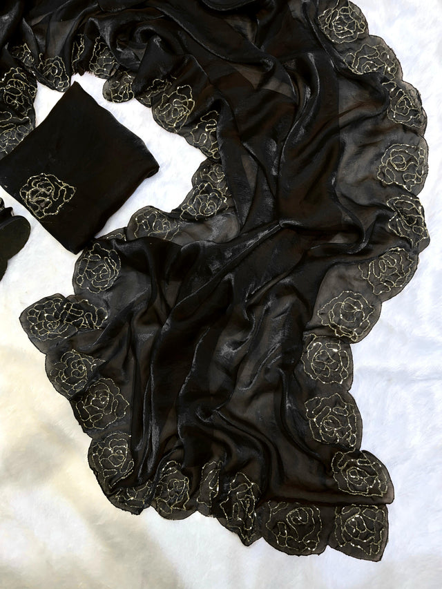 Fantastic Beautiful Katdana handwork Black Color Saree
