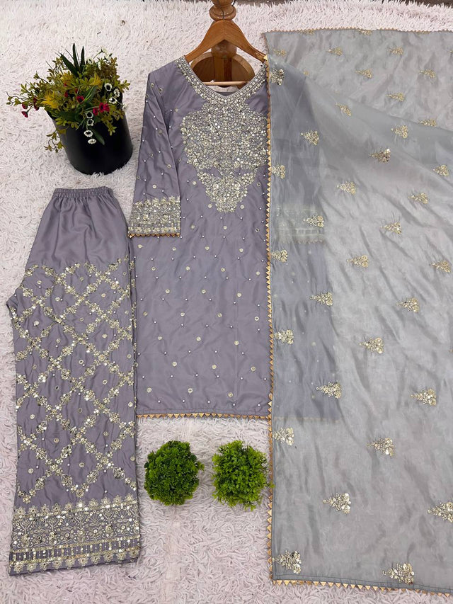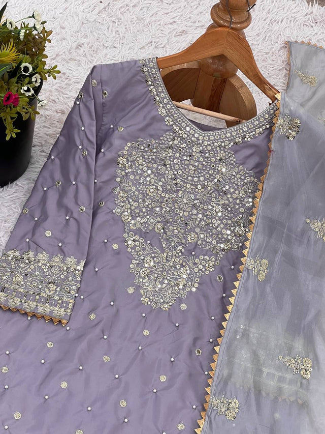 Fantastic Embroidery Work Lavender Color Sharara Suit