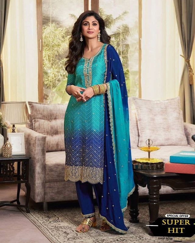 Shilpa Shetty Bollywood Sky Blue With Navy Blue Color Salwar Suit