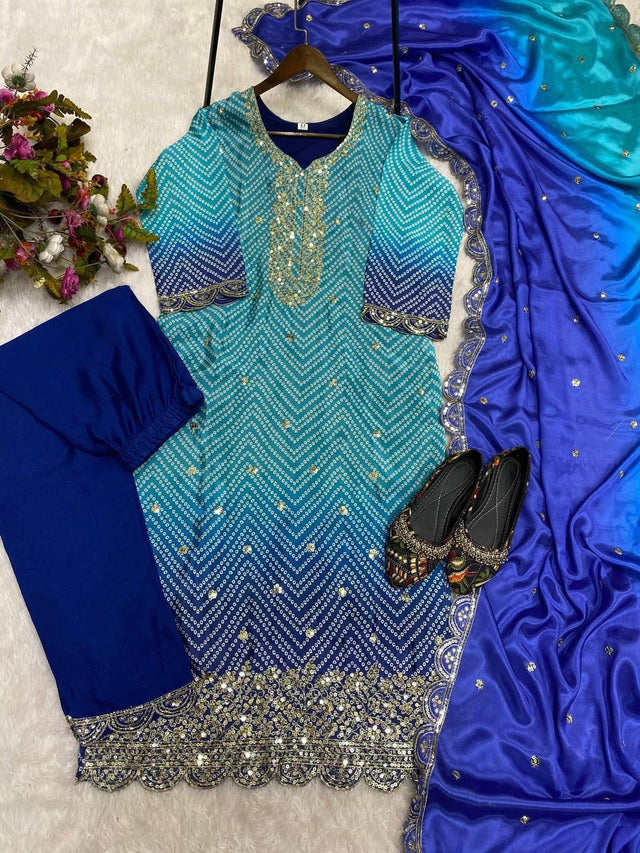 Pure Chinno Silk With Digital Print Sequence Embroidery Work On Dupatta (2.2 Mtr)