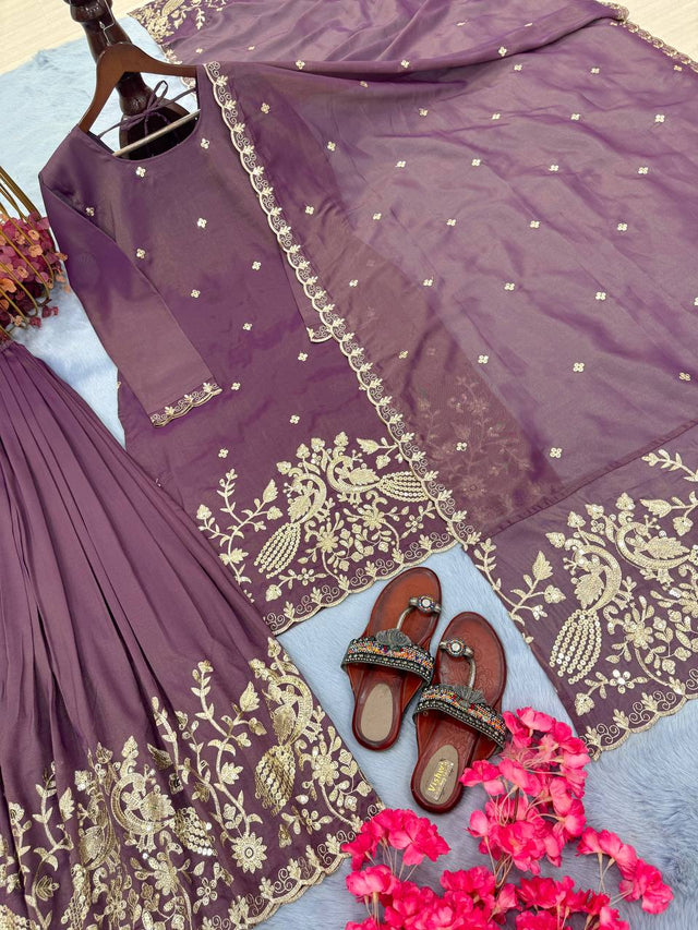 Fantastic Sequence Work Onion Color Palazzo Suit