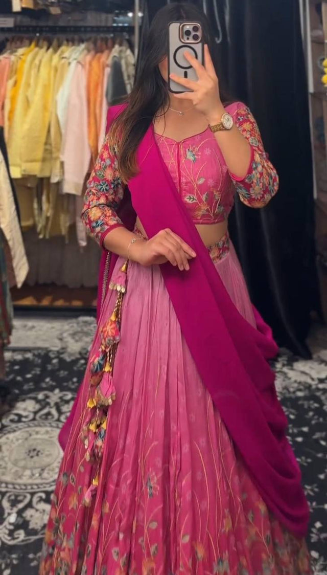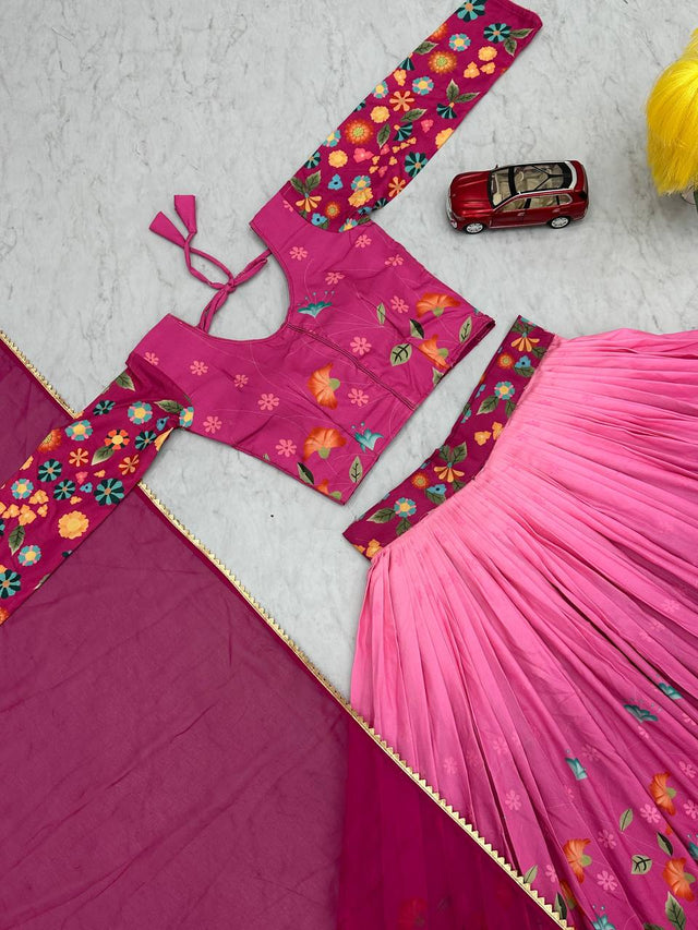 Fashionable Cotton Kalamkari Print Pink Shades Lehenga Choli