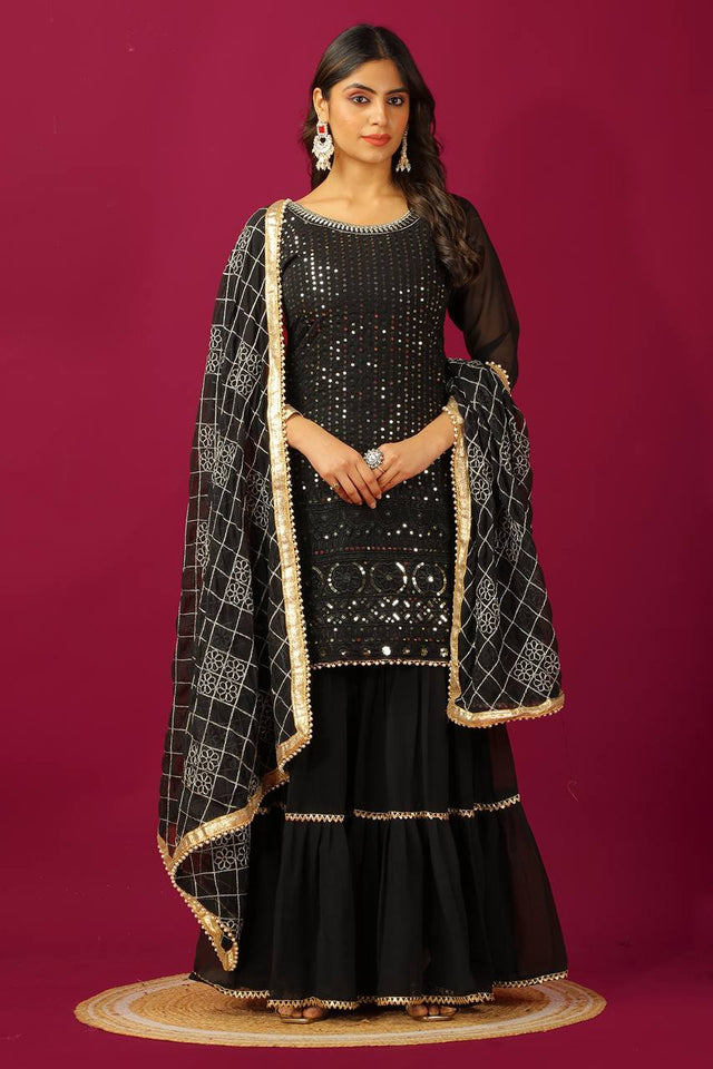 *Top Fabrics * :Faux Georgette With Havvy Embroidery And 5mm Siqueance Work With Moti Less With Sleevs