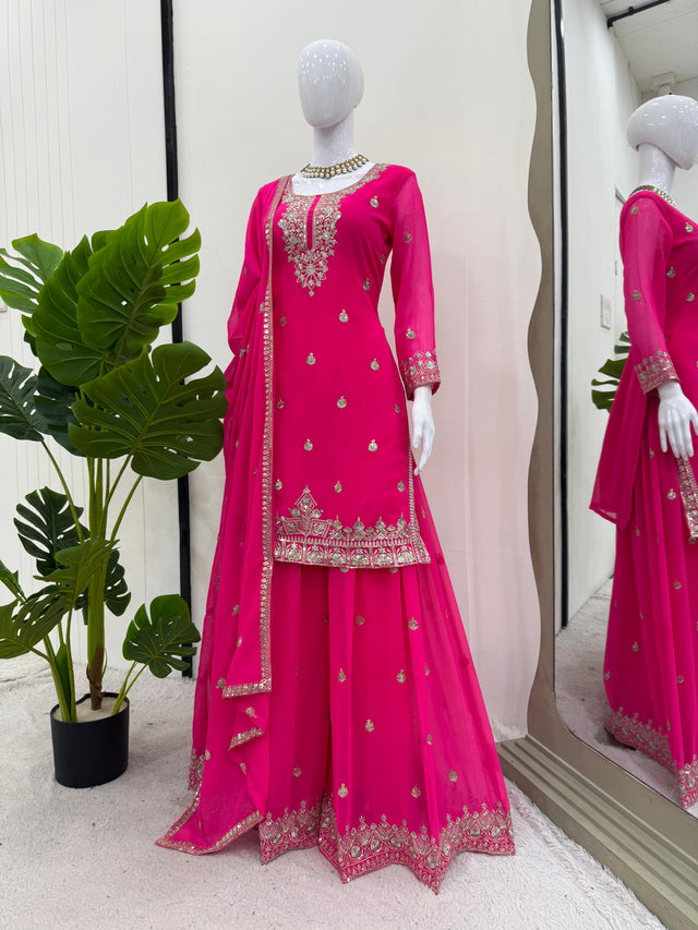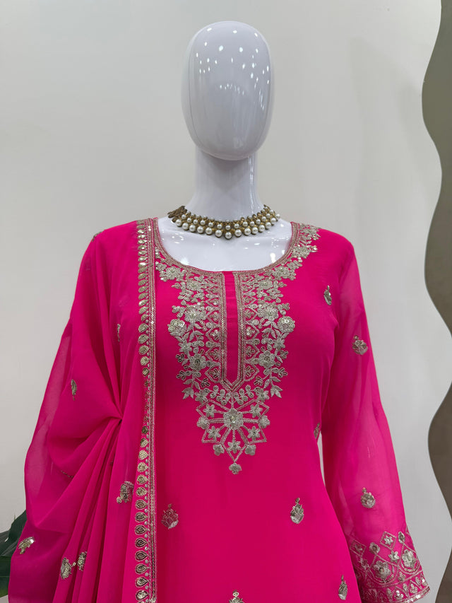 Faux Georgette Festive Wear Pink Color Palazzo Suit
