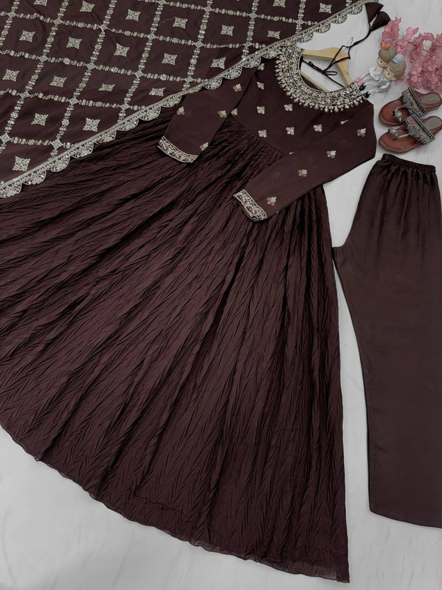 | Fabric. | Pur Crush Chinon Silk Embroidery 5 mm Sequence Work With Sleeve With Tassels | |