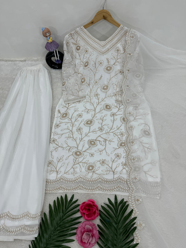 Festive Wear Heavy Sequence Work White Color Sharara Suit