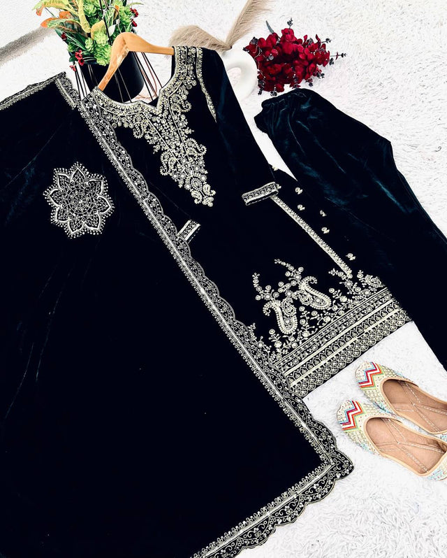 Festive Wear Black Color Sequence Work Kurti Set With Dupatta