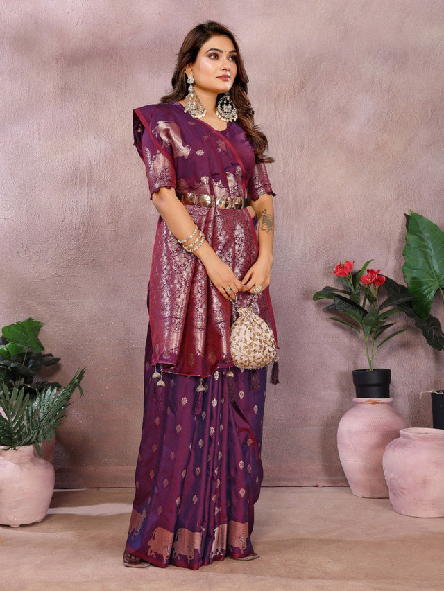 Festive Wear Wine Color Banarasi Silk Saree