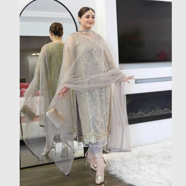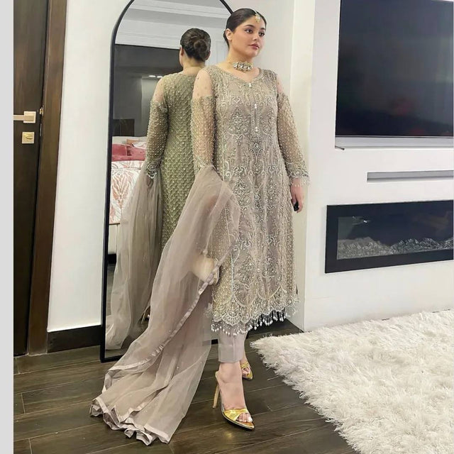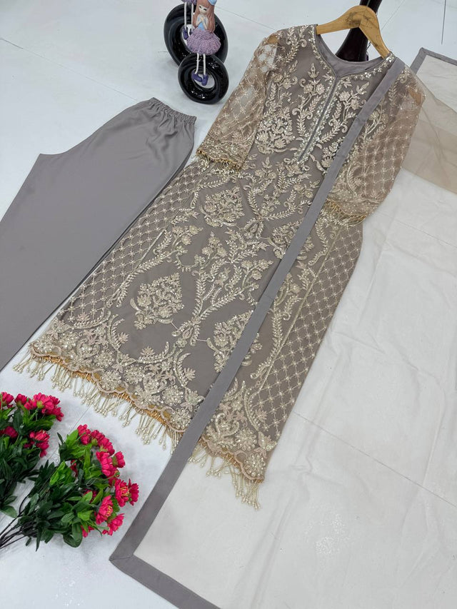 Festive Wear Soft Net Beige Color Salwar Suit
