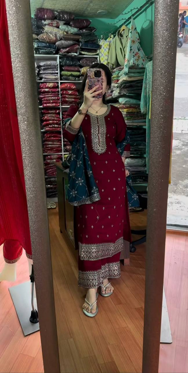 *Dupatta Fabric * :Chinnon Silk With Embroidery Sequence Work And Lace Border