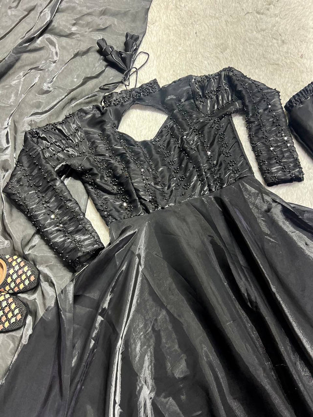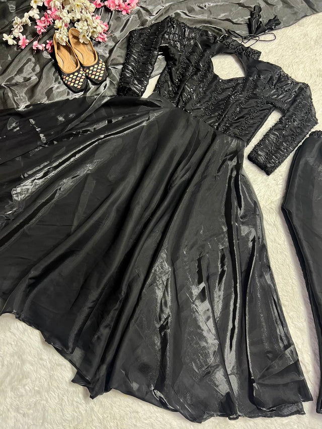Flattering Sequence Work Black Color Anarkali Gown