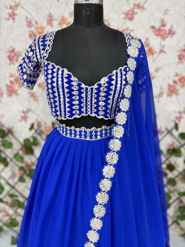 Foil Mirror Work Blue Color Designer Lehenga Choli