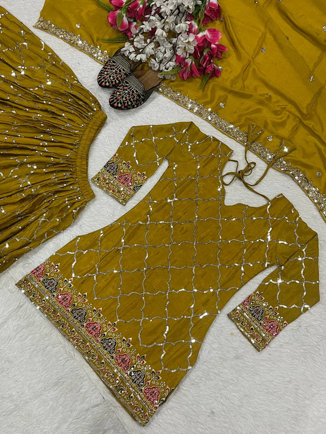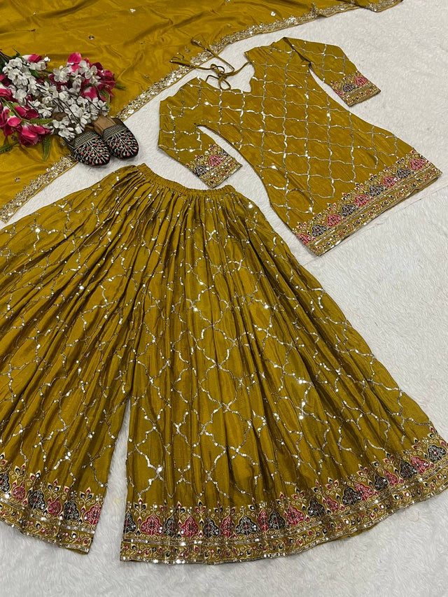 Full Sequence Work Heavy Mustard Color Sharara Suit