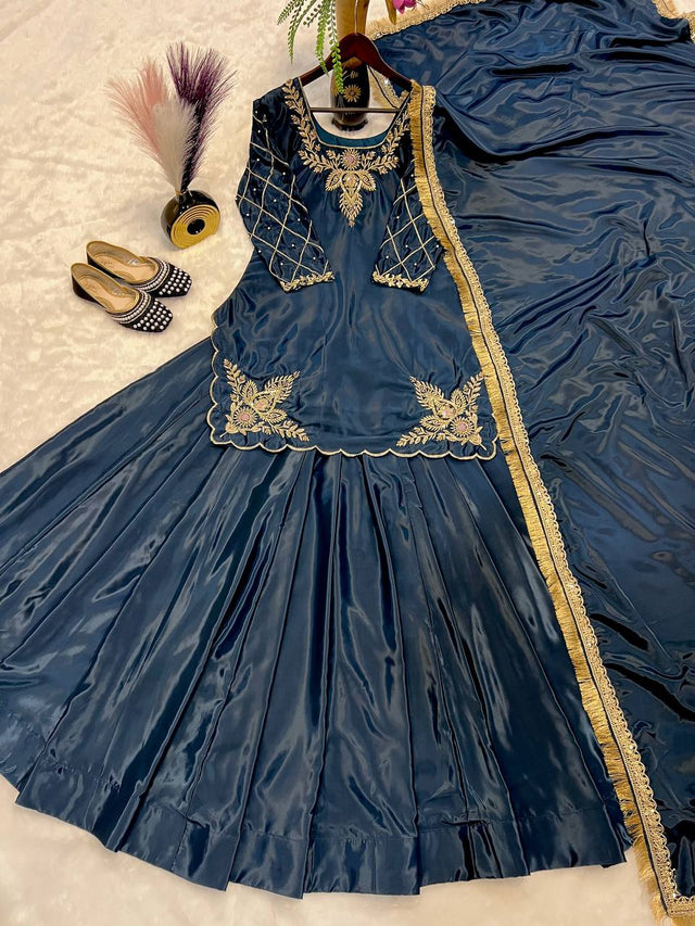 Function Wear Bids Hand Work Navy Blue Color Top With Lehenga