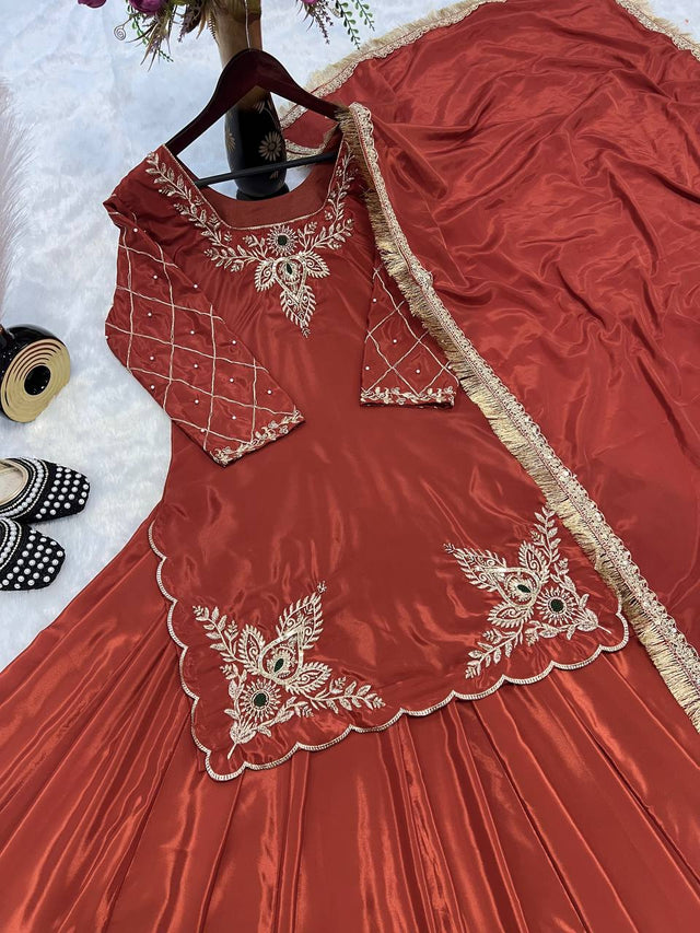 ๐ *Top Fabric* :- Natural Crepe Silk Full sleeve(Full stitched)