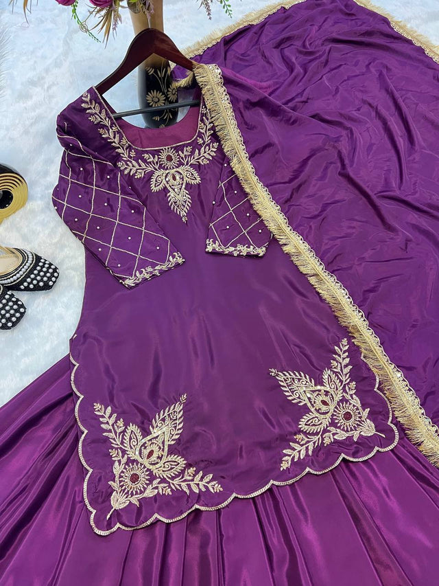 Function Wear Bids Hand Work Purple Color Top With Lehenga
