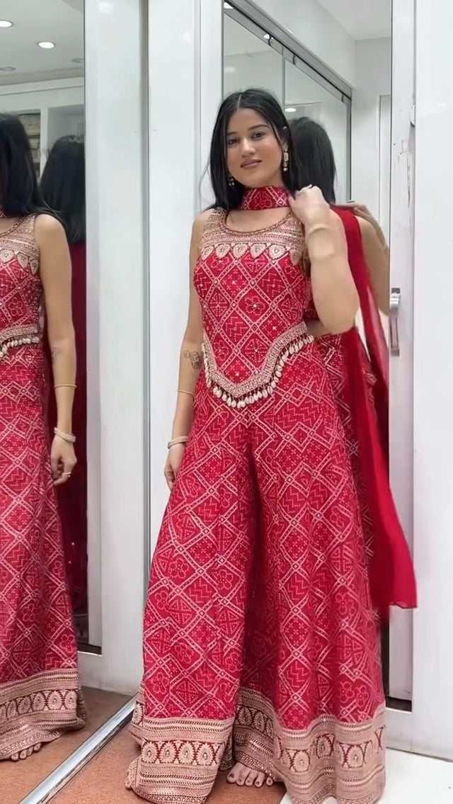 ā”ļø WORK :- BEUTYFUL EMBROIDERY SEQUENCE WORK WITH DIGITAL BANDHEJ PRINT.