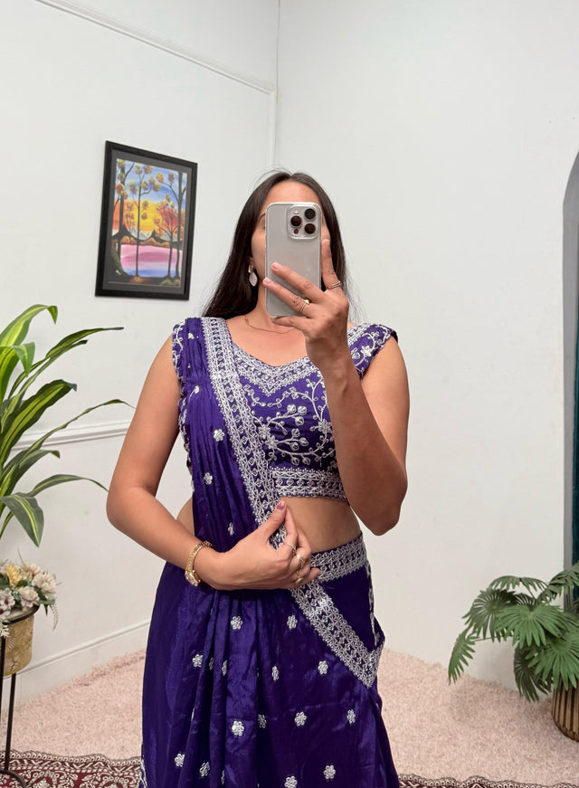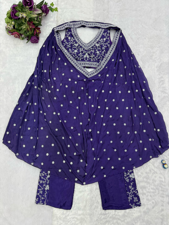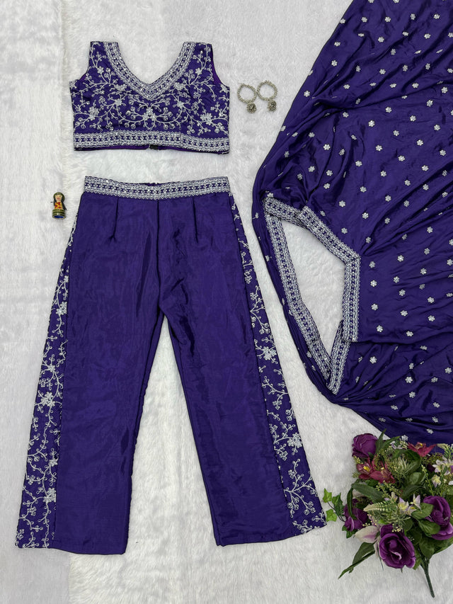 Function Wear Embroidery Work Navy Blue Color Palazzo Set