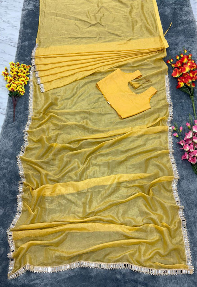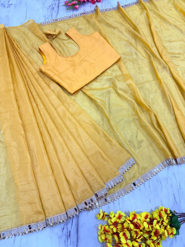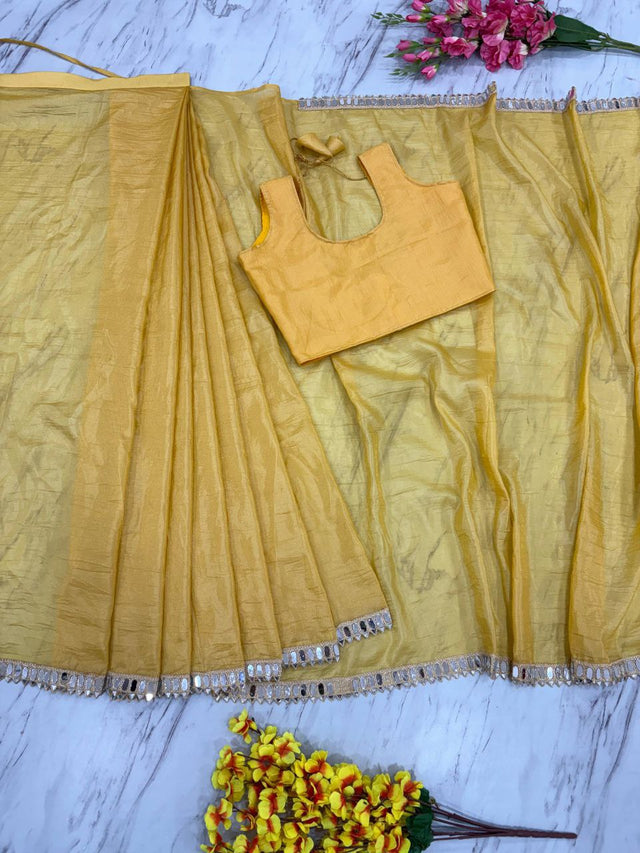 Saree : *Premium Gold Crush Saree Embellished With Beautiful Real Mirror Work Border Work*( Ready To Wear )