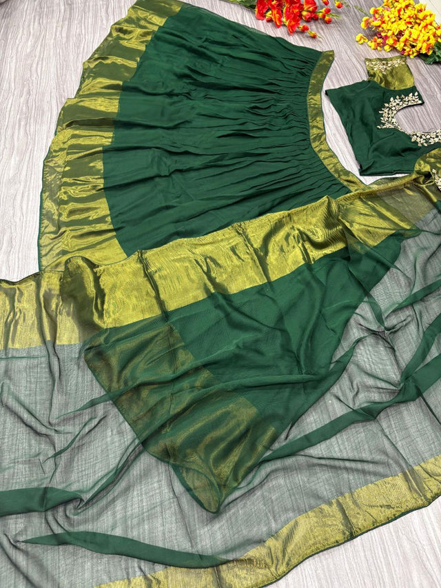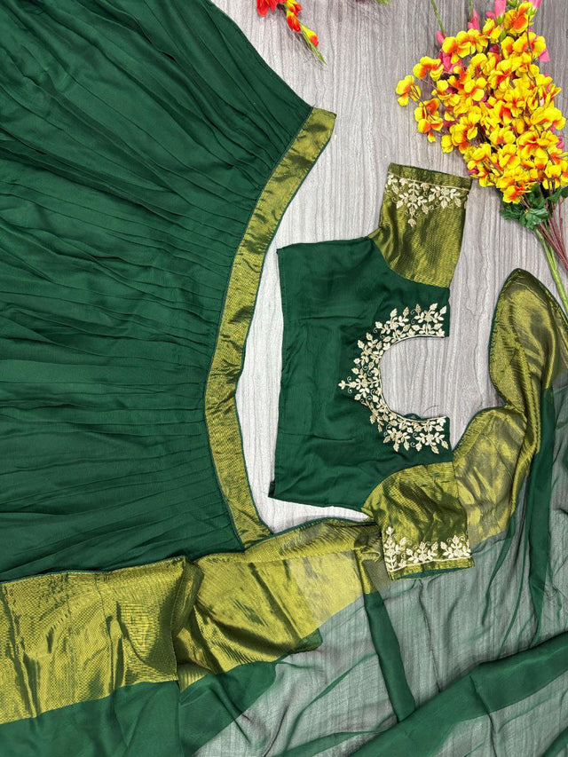 Function Wear Green Color Chiffon Jari Patta Lehenga Choli