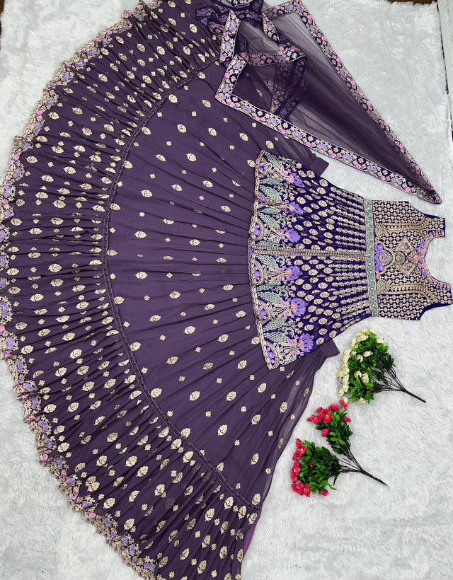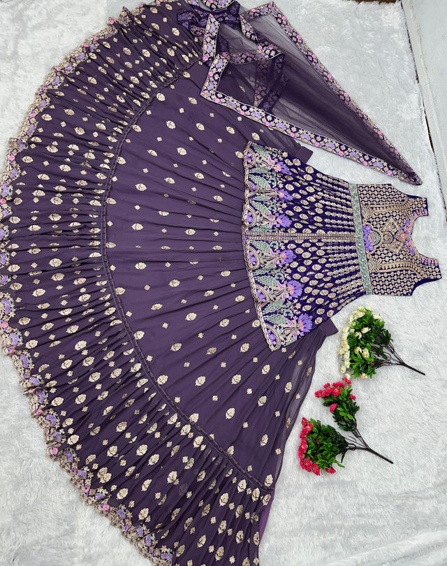 Function Wear Heavy Chine Stitch Work Purple Lehenga With Top