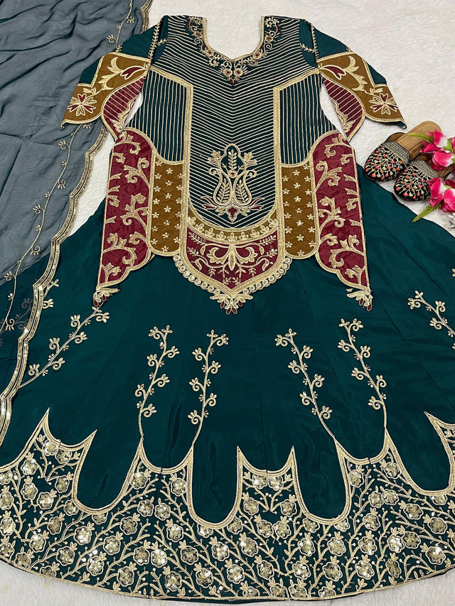 Function Wear Heavy Work Green Color Top With Lehenga