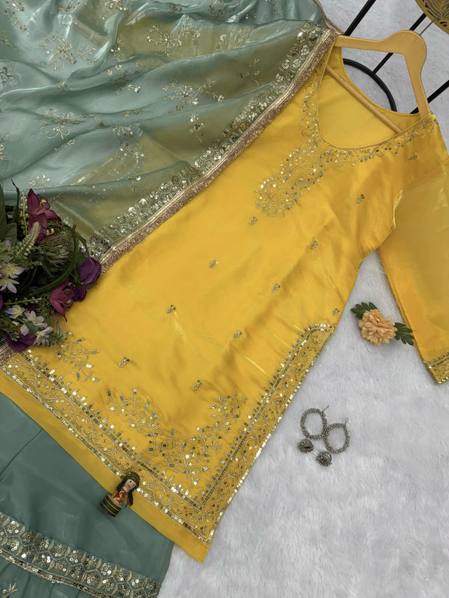 Function Wear Jimmy Choo Yellow Color Sharara Suit