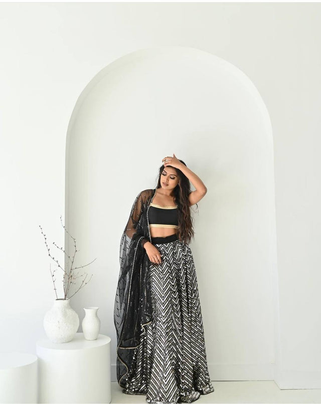 Georgette Black Color Sequence Work Designer Lehenga Choli
