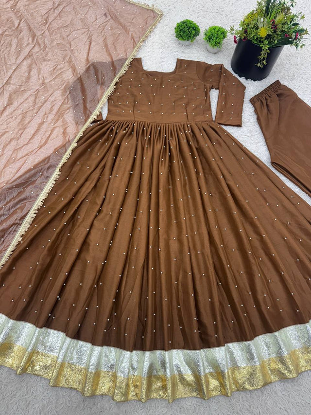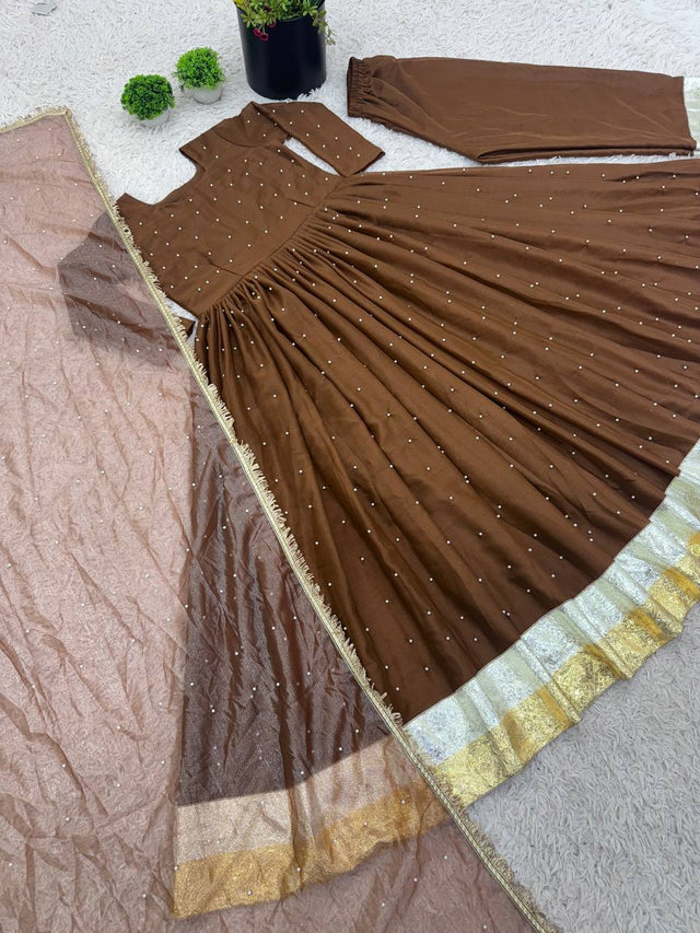 Georgette Brown Color Festive Wear Gown