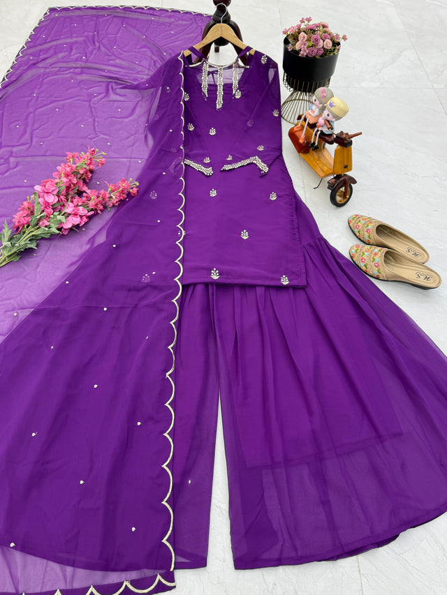 Georgette Purple Color Stylish Palazzo Suit