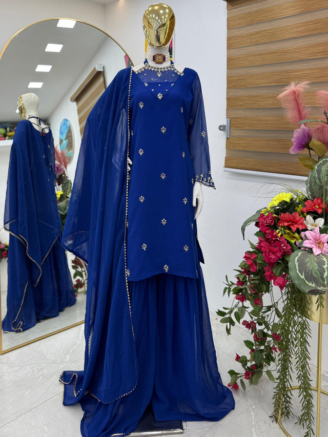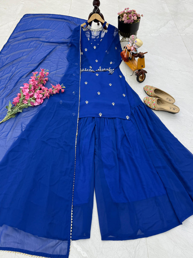 Georgette Blue Color Stylish Palazzo Suit