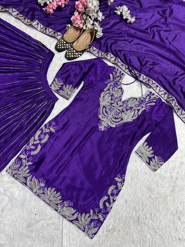 Glimmering Chinnon Silk Sequence Work Purple Color Sharara Suit