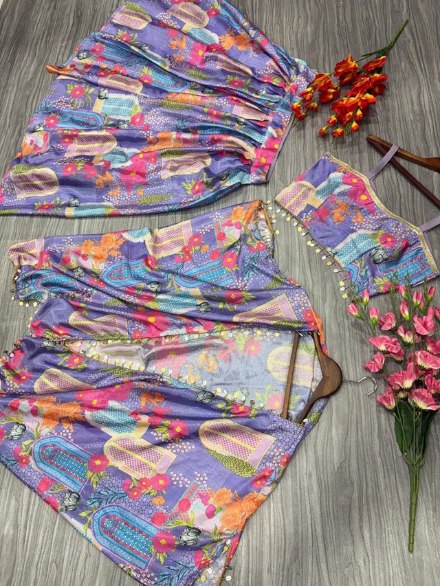 Glimmering Floral Print Multi Color Designer Lehenga Choli With Koti Style Dupatta