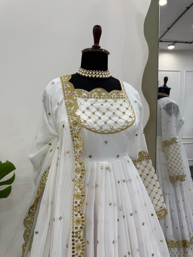 Glimmering Georgette White Color Long Gown