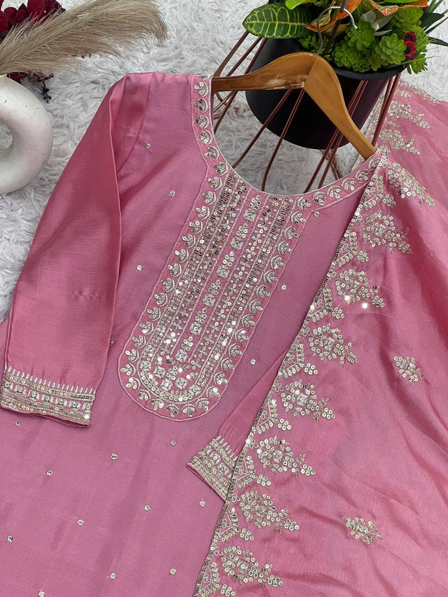 Glorious Chinnon Silk Work Pink Color Sharara Suit