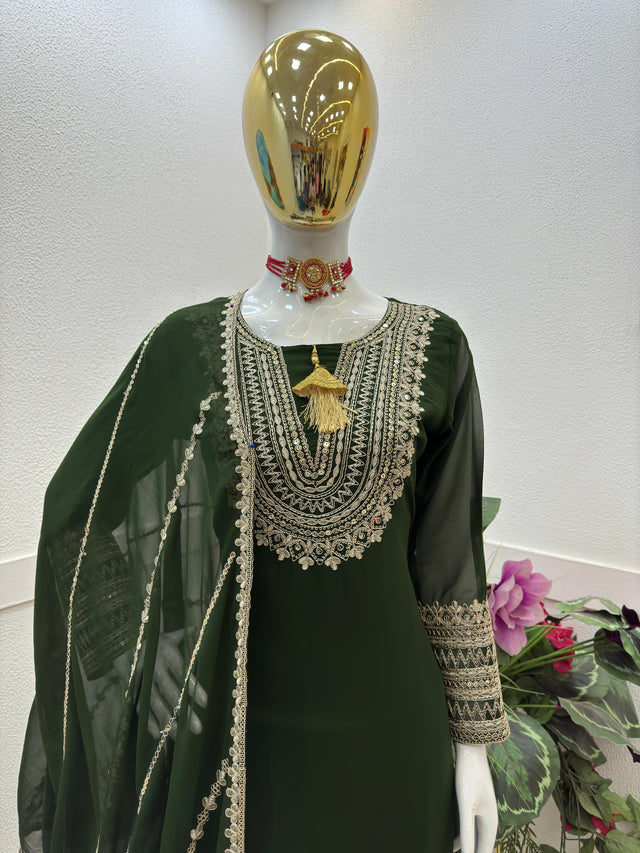 Glorious Coding Sequence Embroidery Green Color Sharara Suit