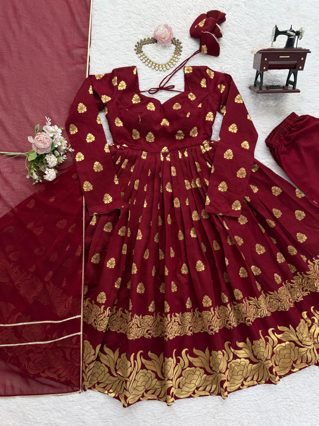 Glorious Maroon Color Festival Wear Anarkali Suit