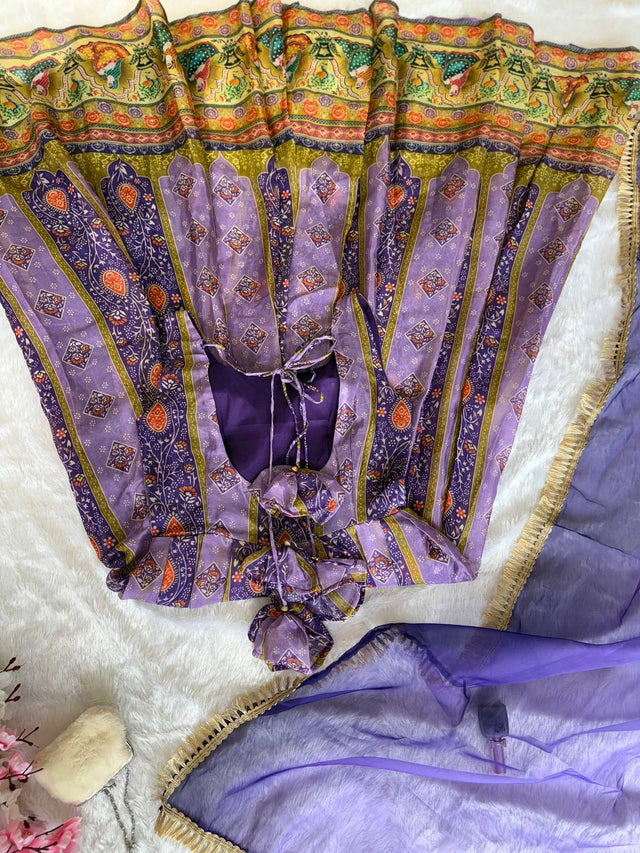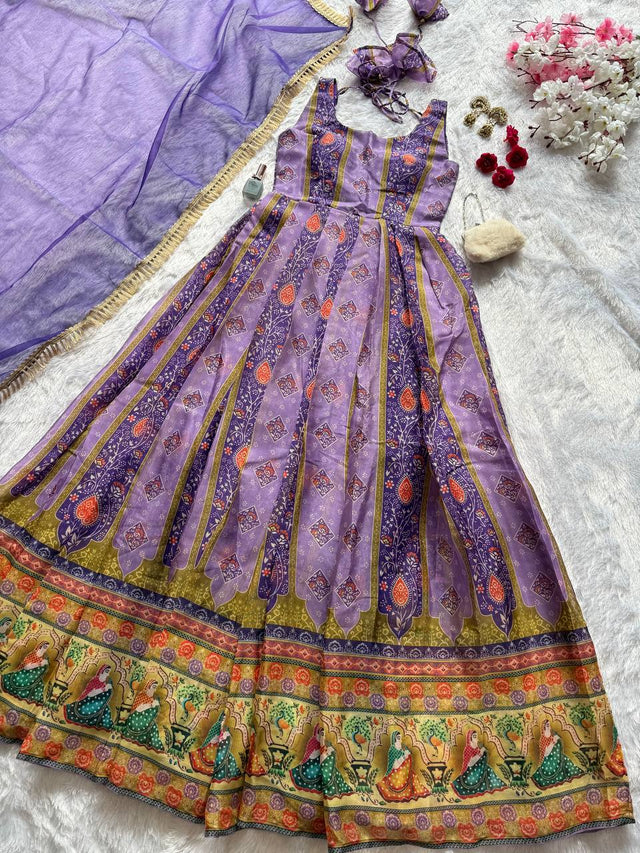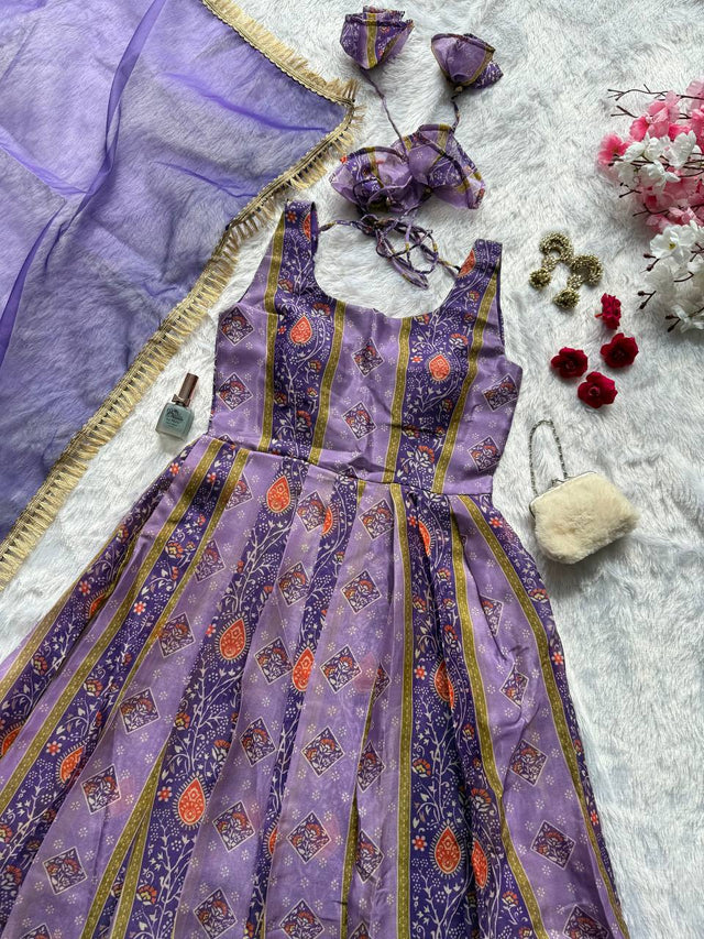 Glorious Purple Color Digital Printed Organza Gown