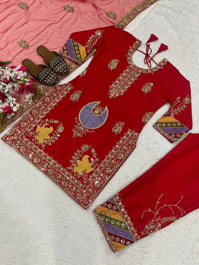 Glorious Red Color Crepe Silk Sequence Work Palazzo Suit