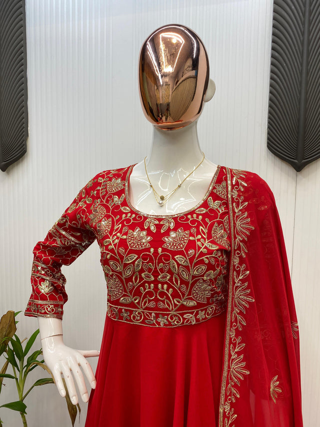 👗 Designer Wear Exclusive And Embroidered Gown And Pant Pair With Dupatta In Georgette